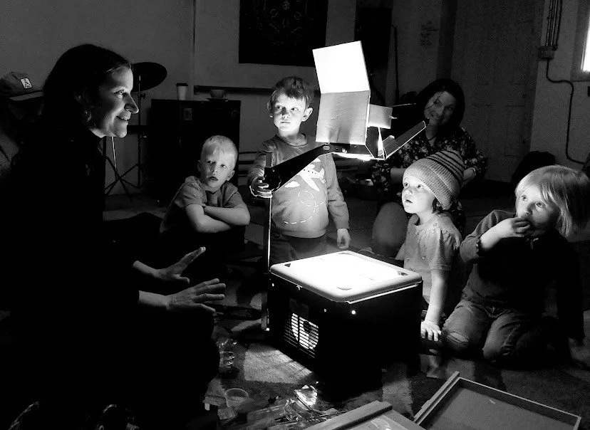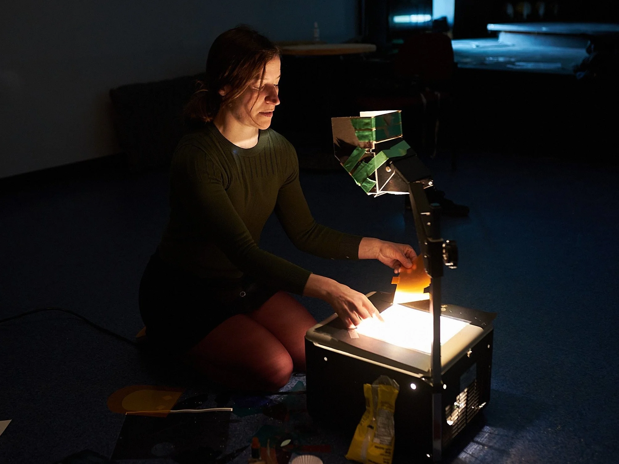 Look Up/Vers le haut is a bilingual series of short performances for audiences who are laying horizontal. It combines live storytelling with visual animation that is projected on the ceiling, and is accompanied by a foley soundscape that is created using everyday objects.